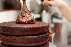 After a year of eating lots of cakes, we settled on what has become our signature Chocolate Layer Cake. The final product was modeled after Margaret’s grandmother’s recipe, with a few adjustments. Our creation is a three layer cake with the perfect density, and lightness. The flavors shine in the three different chocolates we incorporate into the cake, blackout filling, and frosting. We use Valrhona cocoa powder, and a variety of Belgian chocolates in the frosting, and always the highest quality of Madagascar vanilla. Coffee and sour cream are the surprise ingredients that bring the flavor and consistency to perfection. Put these elements together, and you have the most extraordinary chocolate tasting experience. Our chocolate frosting alone is to die for, but combining it with the cake and blackout filling truly takes it to the next level. |